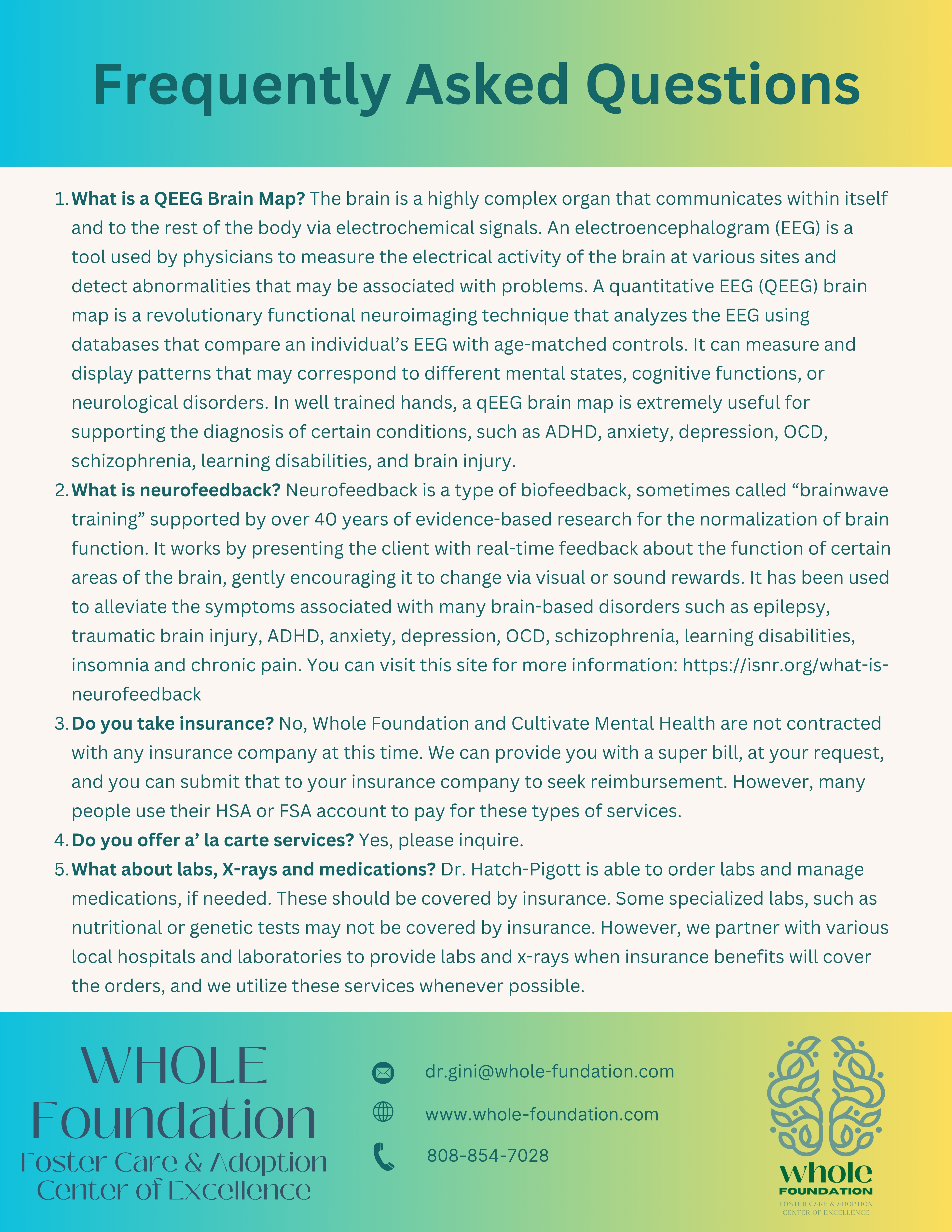 As a nonprofit organization, your support and contributions will enable us to meet our goals and fund our mission for FREE mental health services for foster and adoptive children, including innovative solutions such as neurofeedback!